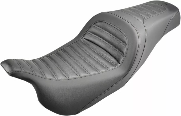 Refined Split-Cushion Design Separates Seating Surface From Lumbar Support to Reduce Tailbone and Back Pressure for Maximum Long-Range Comfort, Tall Lumbar Support and Wide Driver Saddle Saddle Back and Legs for Superior Comfort; Streamlined Nose Improves Reach To Ground, Gelcore ル Technology In Both Driver and Passenger Areas Reduces Tailbone Pressure and Increases Circulation and Comfort, Old School Roll & Pleat Style Saddlehyde ル Cover, Designed and made in the US