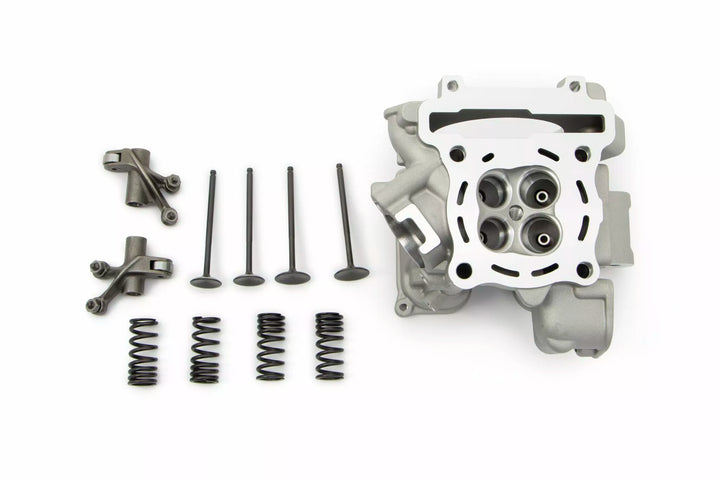 Big Bore and Still Not Enough? Then we have the Naraku Racing 4-Valve Cylinder Head 66 mm Combustion Chamber, Increased Intake, Reinforced Valve Springs and Larger Valves (23 /25 mm). Fits Yamaha X-Max, WR, YZF-R 125 and Other 125cc Mopeds with the Yi-3 Engine, The Jets or the Injection System Must Be Adjusted (Such As With Malossi Force Master). The cylinder head is suitable for the naraku big bore cylinder NK600.76 with 66 mm bore, combustion chamber: 66mm. Inlet Valves: 25mm. Outlet: 23mm