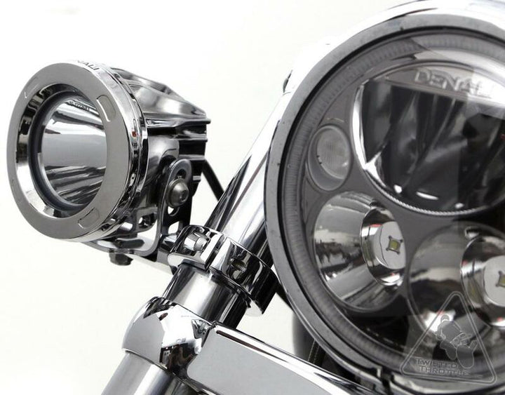 Do you want a stylish and flexible mounting of extra light directly on the fork legs? Then Denali's chromed fork clip is an obvious choice. This robust mounting solution Allows you to attach any Denali LED light kit to pipes with diameter between 39 mm and 49 mm-perfect for inner forks on many classic and custom-hojar.