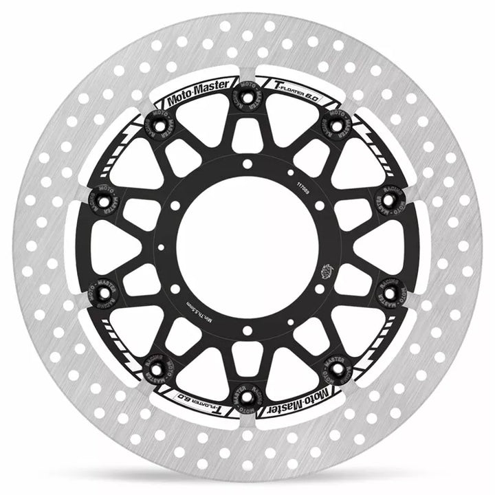 Halo Outer Ring Design Ensures Equal Heat Dispersion Under High Thermal Stress while the Brake Pad Contact Surface is Cleaned Evenly., Outer Ring Thickness 6.0mm or 7.1m, Features an Extra Cooling Slot on External perimeter. Aircraft Aluminum Carrier which is Black Anodized and Laser Marked., T-Floater System Ensures Precise Controlled Full Floating Action under The Most Severe Racing Conditions., T-Floater Pin-Slot Construction Alows High Mechanical LOAD LOAD LOAD LOAD CHILE EXHIBITE Special designed, Hard Anodized Aluminum Floaters.