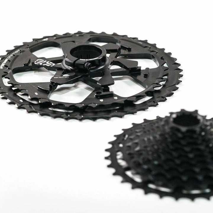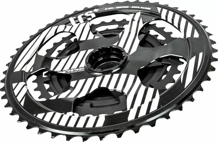 More Range, Less Weight, and Less Money. Need We Say More?, TRS Plus 12 Speed Cassettes Have Class-Leading Range, And Plug Directly Into Sram ル Eagle ル Mechanical* and Shimano ル XTR ル, XT ル, and slx ル 12 Speed drivetrains. Chainring for Better Ground Clearance and Additional Weight Savings., If You're Planning On Building Up Your New Bike With A 12 Speed Drivetrain or Your Existing Setup Is Running Rough, Consider Saving Some Money and Weight With E*Thirte's TRS TRS PLUS TRS PLUSS PLUSS Owners: Please notify us if you will be installing the cassette on a hope ル xD drive, as hope ル XD DRIVERS do not adhere to licensed xD specification and require an additional shim which we will include with your order. Eagle Axs was available in the market, so TRS+ Cassettes May Present Setup Problems In Some Cases. For Best Results We Recommend Helix 12s Cassettes For Use With Eagle Axs Drivetrain!, Compatibility: Sram ル Eagle ル and Shimano ル XTR ル, XT ル, SLX ル 12 Speed Drivetrains., Mounts to an XD ル Driver with a 3M p. Removes Simply with a Chainwhip and Cassette Tool., Freehub Mount: XD ル and xdrivers only., Range: 9-46T: 511%., Speeds: 12 Speed. , Weight: 9-46T, 332 g.