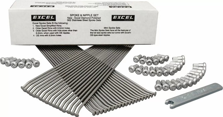 Set includes highly polished 302 stainless spokes with an average tensile strength 10% higher than oem spokes