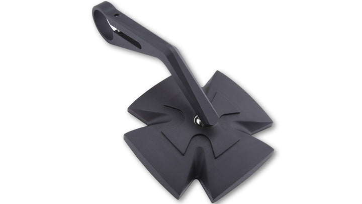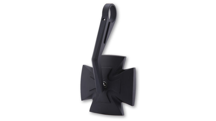 Highsider Handlebar End Mirror in Cross Design with an Aluminum Head. Suitable for handlebars with an inner diameter of 12 to 21 mm. Can be used for left and right side, e-approved.
