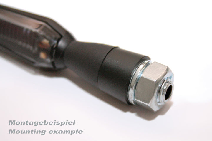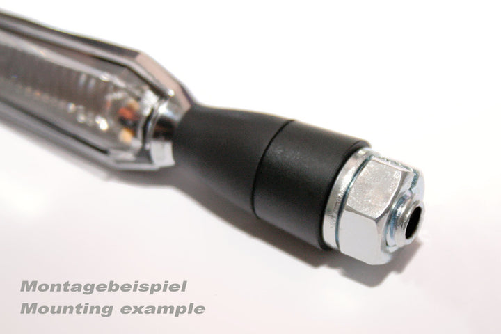 Aluminum Spacer Sleeve for Almost All Indicators With An M8 Threaded Bolt From Highsider. A slot in the sleeve facilitates the passage of the cables. Can be used eiter as a turn signal extension or as a spacer if the threaded bolt on the lamp Holder should hit the inside of the lamp house attaching it to the lamp Holder.