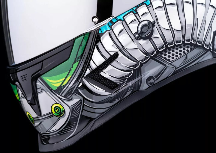 ICON OPTICS ™ VISIRET is both Immre and quickly interchangeable thanks to the smart RAPID-RELEASE ™ system. The helmet comes with both one Clear visor And one RST silver visor In order to be able to adapt to the lighting conditions.