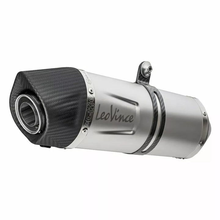 LV One Evo, The Lv One Evo Stainless Steel is the synthesis between tradition and modernity., It Combines The Leovince Classic Style Looks and Innovation in the Research of the Most Performing and Lightweight Materials., Features, Aisi 304 Stainsee, Full Sleevet, (1,650 ᄚ F), Adjustable Full Carbon Fastening Strap, Laser Etched Leovince Logo