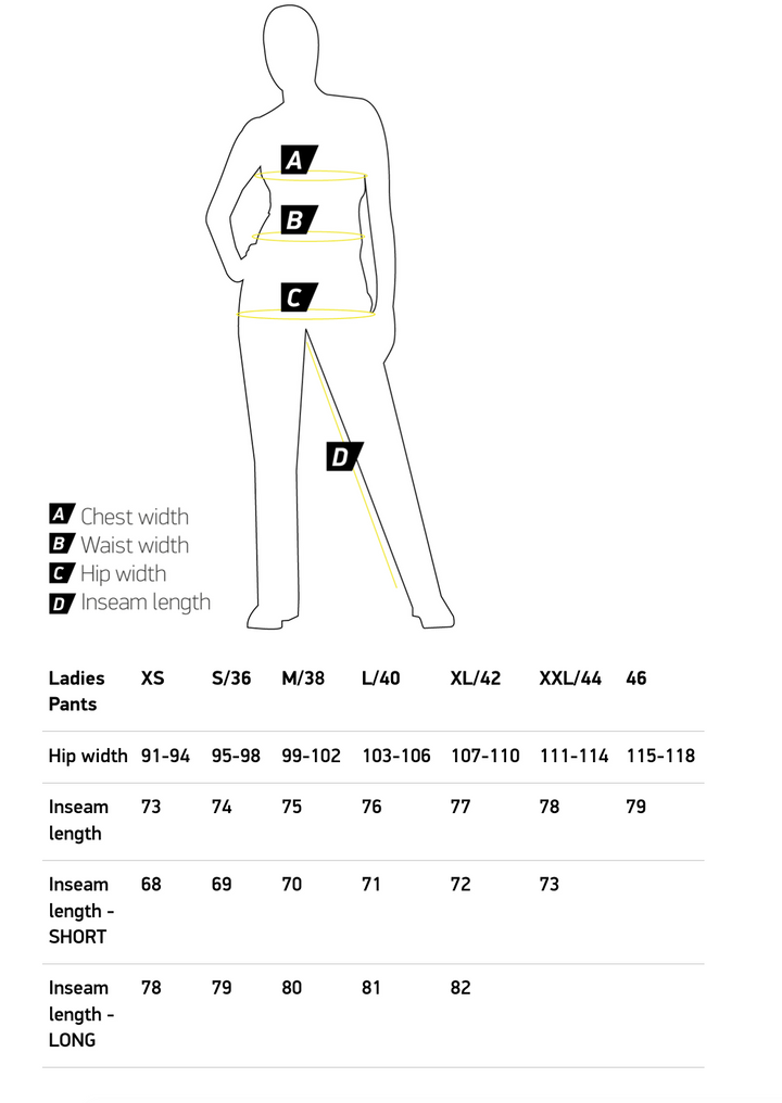 Protection: Knox CE Level 1 knee protection. CE hip protection prepared.