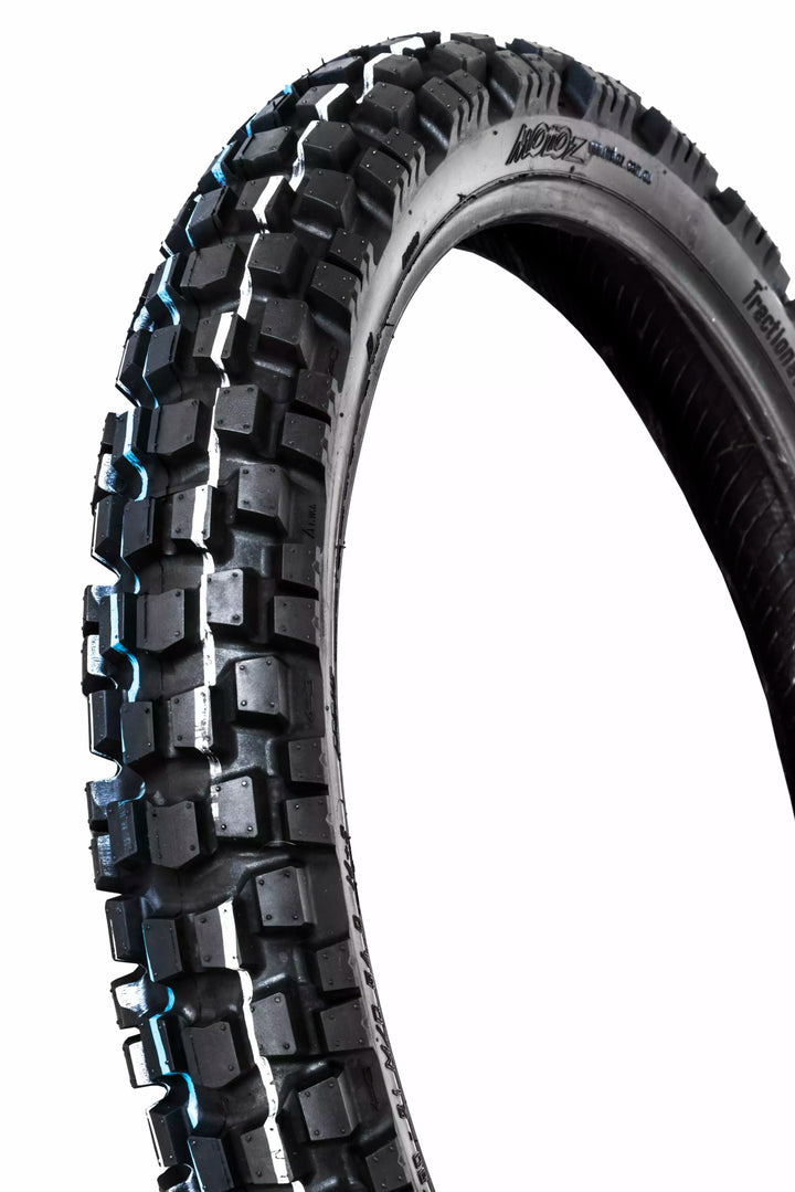 Based on the popular tractionator adventure but with more aggressive off-road traction in all weather extremes., Off-road performance with reasonable on-road manners., Tested and sample construction and compound for adventure and rally use. Without the Need to Change Tyre Pressures Between Off Road and On Road., Self-cleaning and self-sharpening Tread Pattern Gives Excellent Predictability and Power Delivery., Hybrid to coastal Compound with Silica for Optum Grip in Mud and Snow. Forests and Fire Trails., Rallz Also available in Range of Tube Type Adventure Sizes for Light Weight Adventure Bikes.
