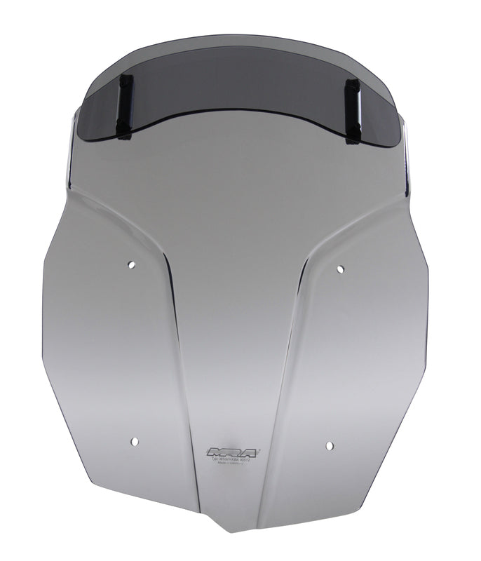 This touring disc has a spoiler at the end that can be manually adjusted to the desired position in seven stages. The Rear Flow of the Spoiler Takes The Wind Pressure Off The Rider and Reduces Turbulence at the same time. The Vario Touring Screen is available in Clear and Smoke Gray. Length (mm): 527 Width (mm): 449 Height (mm): 123 Color: Tinted Crank Lenght (mm): Null Crank Material: Null Windshield Type: Vario