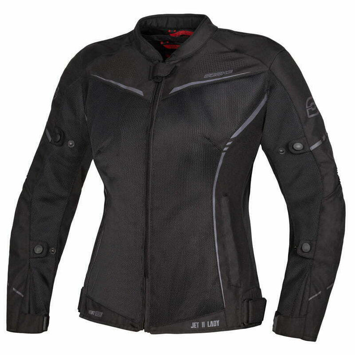 Summer motorcycle jacket for women - Ozone JET II. Made using many steel mesh panels for maximum ventilation. In a set with a removable, waterproof membrane - in case of changes in weather conditions - it will protect the motorcyclist from rain. There is protection (CE level 1) on the elbows and shoulders to ensure safety. Together with JET II pants, the jacket creates an exceptional set for warm days.