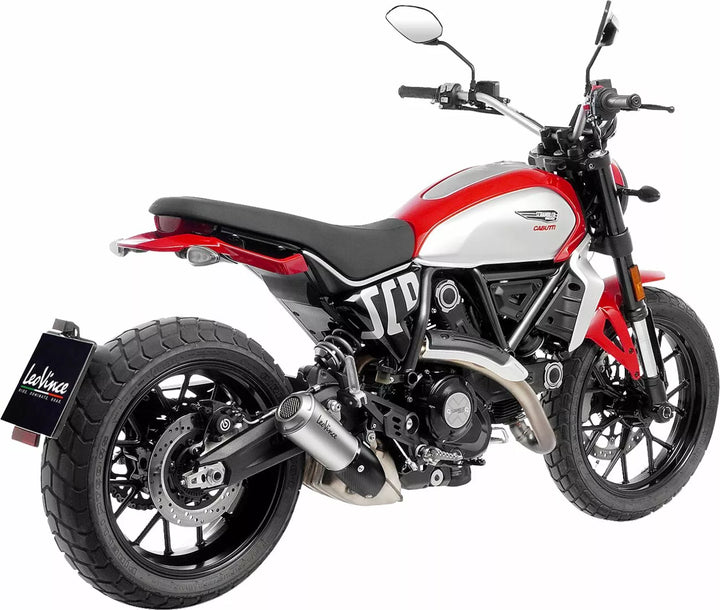 AISI 304 stainless steel, high temperature resistant "lv" sticks included in the box, laser etched leovince logo, shot blasted end cap, laser cut bracket, rear stainless steel mesh, carbon fiber heat shield in the pack