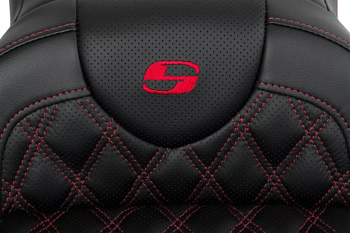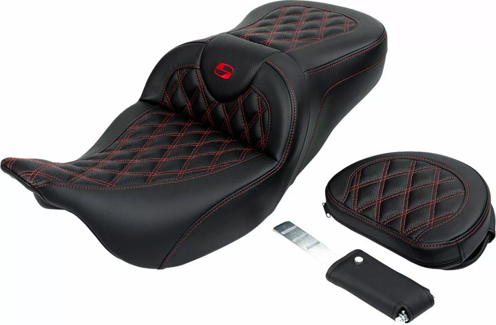 Saddlegel ル In Front and rear Reduces Tailbone Pressure and Increases Circulation and Comfort for Both Driver and Passenger, Tall Lumbar Support and Wide Driver Saddle Supports The Back and Legs for Superior Comfort, While the Streamlined Nose Improves The Ride's Reach to the Rider's Reach to the Rider's Rech Long-Range Comfort By Separating The Seating Surface From The Lumbar Support To Reduce Tailbone and Back Pressure, Ventiled Soft Leather Upholstery Provides A Luxurious Look and Ride, Comes With A Fitten Rain Cver Specially Designed to Protect You Inserts and Weatherproof, No-Maintenance-Required Saddlehyde ル, Designed and Made in the USA