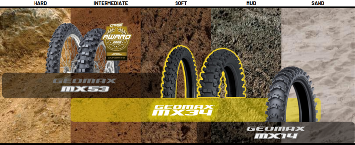 The new Dunlop Geomax MX-53 marks the return to the true philosophy of intermediate Off Road tires, with substantial improvement in soft terrain, while offering excellent performance on hard intermediate tracks BLOCK-IN-A-BLOCK Offers more progressive cornering action and additional slide control. INTERMEDIATE Works in a mix of packed and loose soil. HARD Works in hard packed conditions. OFF-ROAD Provide grip and handling for off-road performance ADDITIONAL TIRE FEATURES The front tire has been redesigned with a taller profile to offer a larger contact patch, providing gentler handling, a higher lean angle and better maneuverability. MX53 front tire blocks are 1mm higher and have been redistributed to give riders better steering feel and more biting edges. A horseshoe pattern of blocks on the front tire reduces the stiffness in the center of the tire to offer greater ride compliance. The unique pattern of the horseshoe blocks also grabs the dirt to provide better braking grip. Block-In-A-Block technology has been added to the front tire of the MX53 in order to aid in linear tracking and improved steering. The altered Block-In-A-Block shape on the rear tire allows for added flex in the knob to enhance grip while providing stability and slide control. Front and rear tires include tie bars between select knobs to reduce flex at the base of the knobs, improving durability. Dunlop’s Advanced Apex Design improves shock absorption by diffusing shock through a taller, thinner apex inside the sidewall. New compounds on the front and rear tire enhance durability and longevity. Aspect_ratio: 100.0 Ground: Medium-Soft-Mud Homologation: NHS (Not for Highway Service) Position: Rear Rim_diameter: 18 Speed_index: M < 130 km/h Tire_category: MX, SX Tire_family: Motorcycle & Scooter Tires Tire_load_index: 64.0 Tire_pattern: GEOMAX MX53 Tire_Structure: X-Ply Tire_width: 110 Tubeless_or_Tubetype: TT - Tubetype