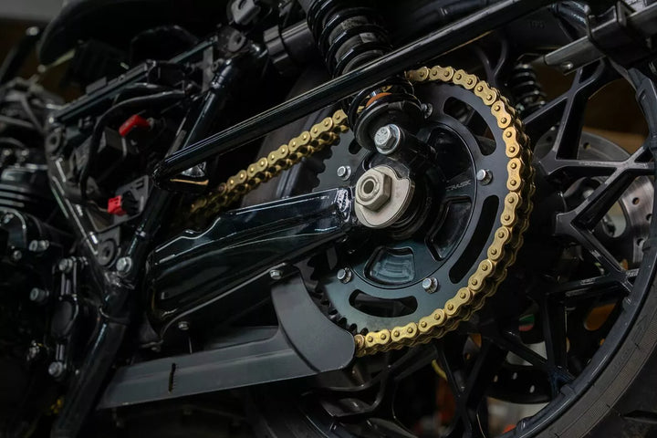 Upgrades Stock Belt Drive to Chain Drive, Retains Stock Cush Drive Islator, Heat-Treated and Coated for Added Durability, Custom Steel Realar Sprock, Includes 25-TOTS FRONT SPROPET, SPROCKET RATIOS Comparable to Stock Separately, 54-tooth Part 1210-2493, 51-tooth Part 1210-2494, Made in the US