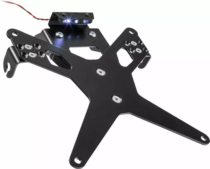 The License Plate Holder is Extremely Durable and Weather Proof., Black Powder Coated. , The License Plate Holder Can Be Used For Any Kind of License Plate (175mm Width)., No Modification of Fairing Required., Stepless Adjustment of Rake Angle., Indicator Support Adjustable in 3 Positions. Plate., Special Indicator Light Mounts (Sold Separately) Required for Stock Indicator Lights., Kit Includes: 1 License Plate Holder Incl. Mounting Kit., LED License Plate Light "e Approved" Incl. Support., Back Light With Support. Disclaimer: Important: For the use of this license Plate Holder with the oem Turn Signals of Ducati Models (2015 - Present) A Special Holder is Needed (Zieger Turn Signal Adapter and Duc. Parts Europe Part Number: 20301971. Vendor Number: 10005790).