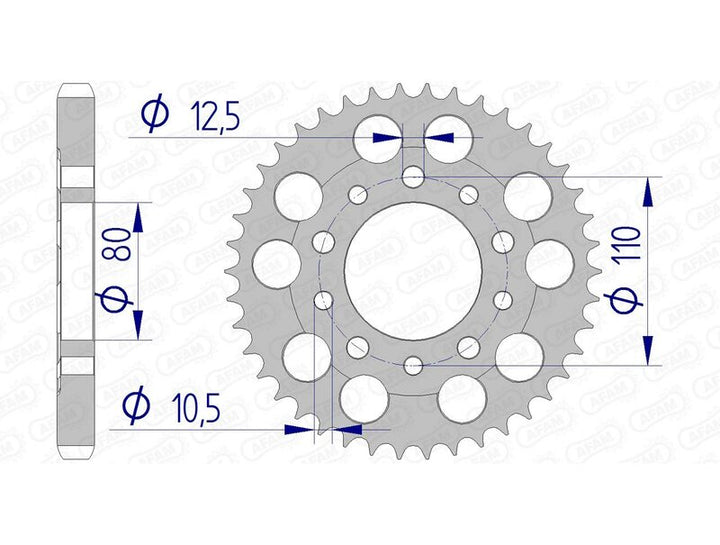 Los engranajes de corona de aluminio AFAM están hechos de una aleación que es tanto ligera como resistente. La calidad del mecanizado y la precisión del corte hacen que AFM sea un estándar mundial para piezas de transmisión de motocicletas. Carrera de equipo de aluminio de aluminio ultracligencia con resistencia a la anodización dura para la resistencia al acabado libre y de rango.