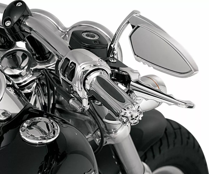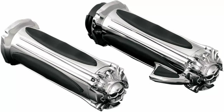 Looks malvados, comodidad malvada, los cuerpos de agarre son cromados suaves con insertos de goma que absorben vibraciones, las tapas de extremo zombie mejoran el aspecto, las empuñaduras de zombie premium incluyen el acelerador jefe
