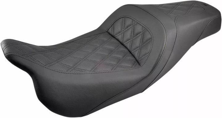 El diseño refinado de cojín dividido separa la superficie de los asientos del soporte lumbar para reducir el coxis y la presión posterior para obtener la máxima comodidad de largo alcance, soporte lumbar alto y ancho de sillín de sillín y piernas para una comodidad superior; La nariz simplificada mejora el alcance al suelo, el gelcore ル en las áreas del conductor y los pasajeros reduce la presión del rócalas y aumenta la circulación y la comodidad, el asiento de puntada de celosía (LS) infunde el estilo retro de puntada de celosía de la vieja escuela con un moderno giro ajustado, cubierta de lluvia protectora incluida, diseñada y hecha en los EE. UU., Disponible en negro en negro.