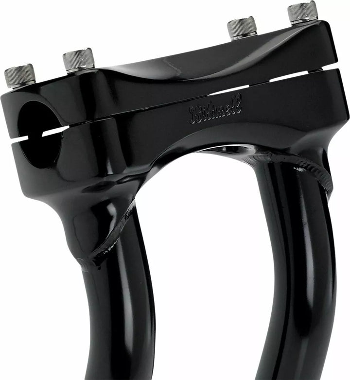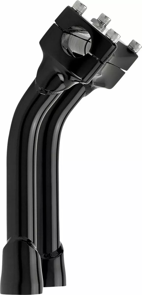 La abrazadera de barra de acero de una sola pieza de inversión acepta 1-1/8 "O.D. Manillares, 0.120" (3 mm) Muro x 1 "O.D. 4130 RECUESTOS RECUPTOS DE CROMOLIO, CNC TOTRO TODADO BASE DE MONTAJE ACEPTACIÓN 1/2-13 T.P.I. STOCK STOCK MAY Desplazamiento de compensación para reducir el alcance para jinetes más cortos, tig soldados y pulidos a mano antes, hardware de abrazadera de barra
