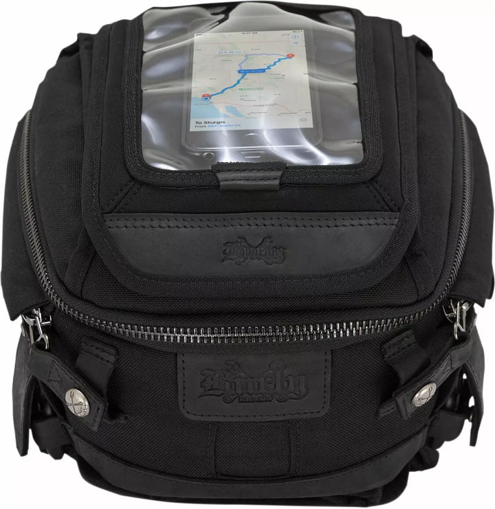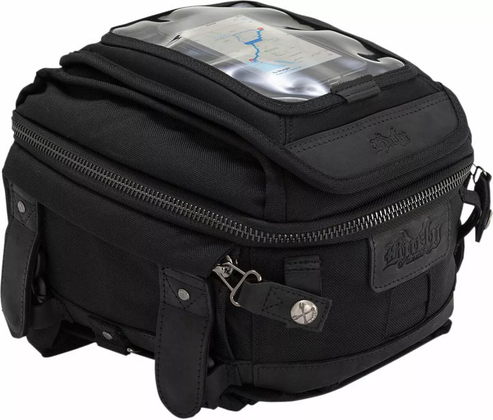 Easy On, Easy Off Magnetic System Reinforced with Safety Securing D-Ring Anchor Points for Mounting, If You're Riding Solo or Simply Want The Bag Out of the Way, it's equally at home on the tail and includes a tail on Includes a Convenient Magnetic Removable Map/Accessory Screen That Sticks Either Directly to the Bag Lid or Directly to the Tank, The Map Screen Is Designed With An Innovative Stretch Screen Design to Hold Any Variety of Smart Phones, Small Tables, And Ev as as well as Motorcycle Accesorios de carga para que pueda mantener su teléfono inteligente, tableta o Go-Pro encerrados en un viaje largo, dos bolsillos exteriores de cremallera con correas de cuero, "Sistema anti-Snap Snap", "Moto Centric" de velocidad de velocidad
