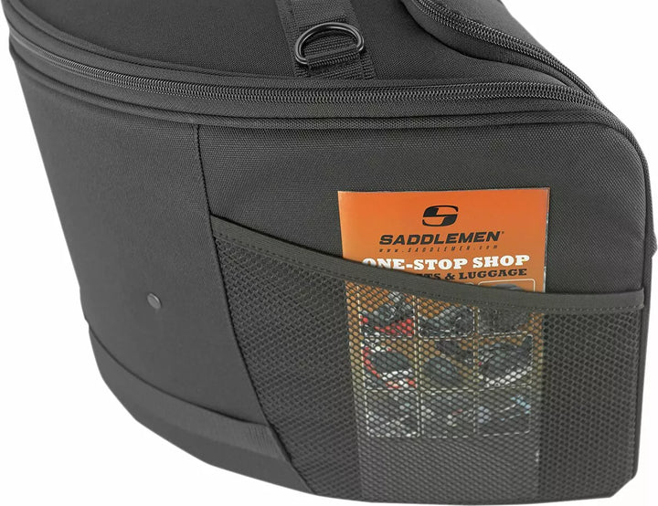 Diseñado para encajar perfectamente entre el conductor y el paquete de turismo, construido con textiles 1200D resistentes a los rayos UV, agua y clima, múltiples anillos de montaje de gran tamaño alrededor de la bolsa superan la optisión de montaje única, tres bolsillos externos organización de almacenamiento adicional, organización de almacenamiento adicional de intermedio, organización de la tienda adicional de intermedio. Dientes de cremallera de malla de nylon con controles deslizantes negros equipados con tirones grandes para fácil usar con una mano enguantada, cubierta de lluvia reflectante con cable cinch de bloqueo incluido, mantiene forma incluso cuando está vacío