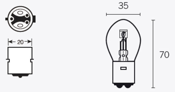 V Las bombillas de reemplazo de piezas son esenciales para su seguridad, ver y ver; Ya sea en su motocicleta, quad o scooter.b35 bulbos de tipo 6V-35 /35WFITMENTBA20D /7324 /121.50 Base Base: BA20D ECE Categoría: B35 Homologation: No gay Pack
