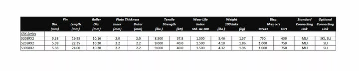 , Características de aclaración, fricción reducida y diseño de ring X de Quadra que aumenta la vida útil de la cadena de 11/2 a 2 veces más larga que una cadena de junta tórica estándar