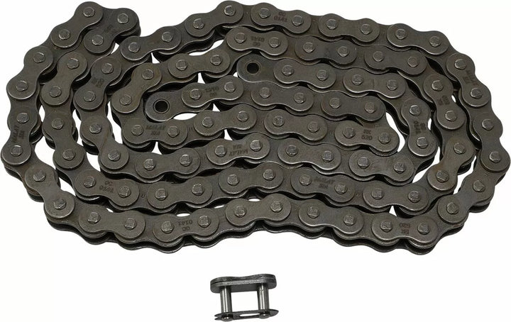 Construcción de acero de aleación de carbono de carbono mediano tratado con calor, todos los componentes tratados con calor y disparo para la máxima resistencia, remachado de cuatro puntos y rodillos sólidos, las cadenas incluyen un enlace de conexión de clip