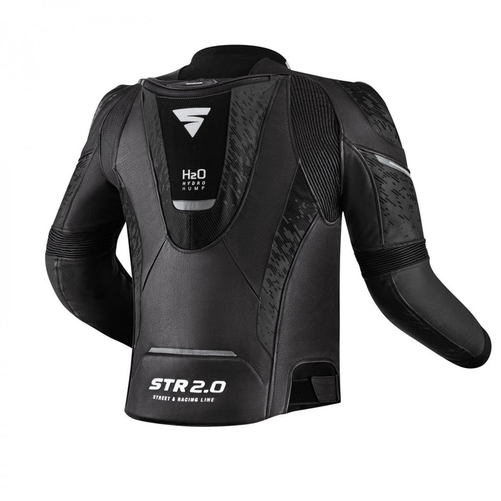 STR 2.0 tiene una joroba aerodinámica que tiene forma para un mejor flujo de aire. Minimiza la turbulencia detrás del casco, que se vuelve invaluable a velocidades más altas. La joroba es lo suficientemente grande como para acomodar medio litro Hydrobag (vendido por separado), sin afectar el perfil aerodinámico o la comodidad de conducción. Ahora puede enfrentar su sed sin tener que salir de la motocicleta y quitar su mochila. El modelo STR 2.0 tiene grandes áreas de cuero perforadas que le brindan la ventilación que necesita para las carreras de pista. La piel perforada de alta calidad no solo proporciona una gran transpirabilidad, sino que también actúa como una excelente protección contra la sarna y las lesiones. STR 2.0 es una combinación que dura toda la temporada.