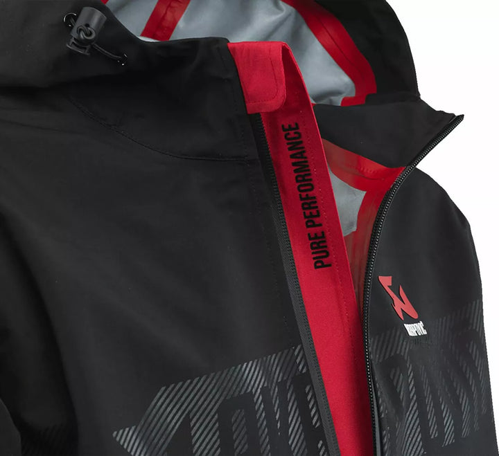 Hecho de 100% de poliéster, sus tres capas lo mantienen protegido en la mayoría de las condiciones. Una columna de agua de 10,000 mm mantiene fuera de la lluvia e incluso la nieve, y la columna transpirable de 8,000 mm lo mantiene