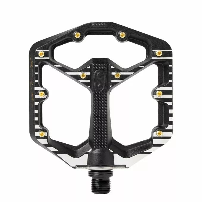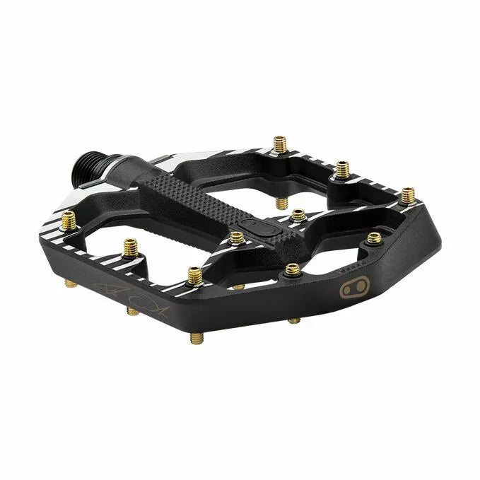 Nuestro pedal de plataforma de nivel Pro, diseñado con Fabio Wibmer., Acabado de doble anodizado y metido láser., Área de superficie óptima., Perfil mínimo de 11 mm-13 mm de fin., Plataforma cóncava para un punto de apoyo seguro. Para facilitar el mantenimiento.