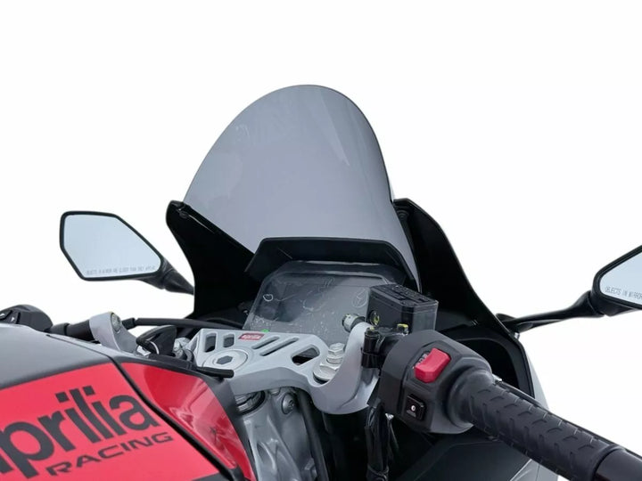 El parabrisas hecho de plexiglás de PMMA de alta calidad, el mismo material que utilizamos para la realización de las pantallas dedicadas a los campeonatos mundiales de MotoGP y Superbike. Se usó un grosor de solo 2 mm para mantener excelentes choques de Iteslightnes en caso de un parabrisas. que se ajusta perfectamente a la línea de la bicicleta, dándole una apariencia aún más cautivadora. Atención: intercambiable con el parabrisas original, reemplaza al estándar sin modificaciones. Compatible con todos los carenados en los que se puede instalar el parabrisas original.