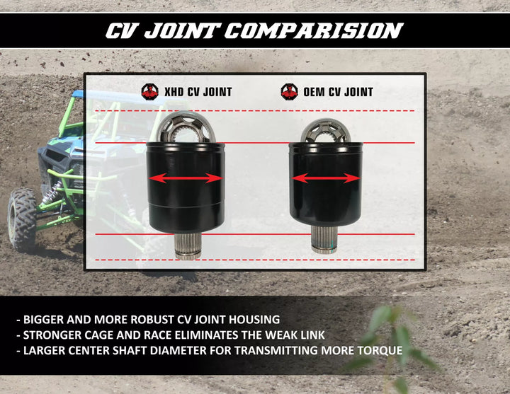 Grasa a base de litio de alta calidad que contiene molibdeno con alto punto de caída, diseño único de botas en terreno de conducción para la reducción del calor, componentes del eje de tratamiento térmico dual para mayor resistencia, 20-30% más componentes de componentes CNC, diseño de jaulas reingenadas para mejorar la durabilidad, el eje completo compuesto por 4340 acero cromolí, ángulo de balanceo de hasta 47 ᄚ, dos años de garantía limitada de garantía limitada limitada limitada limitada limitada limitada limitada limitada limitada.