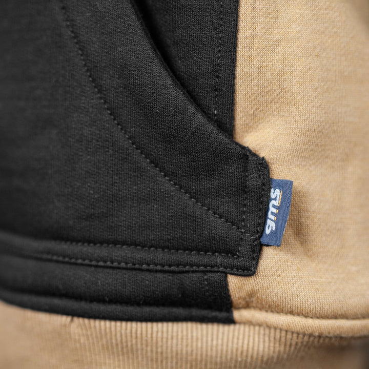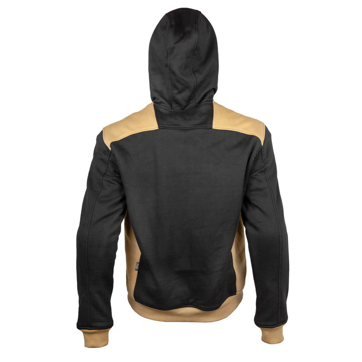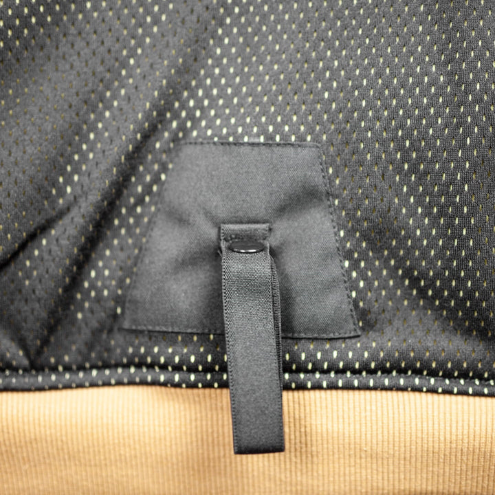 Presione el botón en la parte posterior del capó, banda elástica para fijar el cable dentro de los suéteres del capó