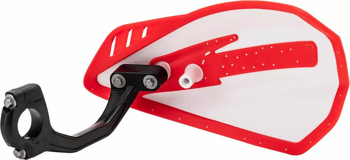 Handguard abierto con soportes de fijación universal, dos posiciones horizontales diferentes (más ancho o más estrecha), la máxima protección contra los restos de los senderos, la cubierta de doble inyección para aumentar la resistencia a los impactos, livianos, compactos y flexibles, los soportes pueden ser moquinistas pueden ser moquinistas.