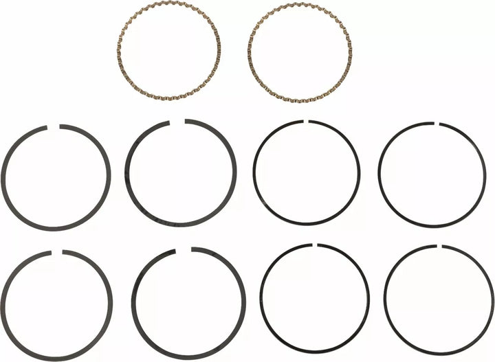 Incluye anillos de compresión superiores, los segundos anillos de compresión y los anillos de control de aceite, los anillos de compresión superior son la cara del cañón, ayuda en el proceso de transferencia de calor entre el pistón y la pared del cilindro, controla los gases de cámara de combustión de combustión que permiten que el pistón transfiera la energía de la cara de combustión transversal de la cara de combustión inversa, la cara de la carpeta, promueve un sellado lateral que evita que el aceite de anillo sea mejor de los ring. Duplicada el raspado de los lados inferiores OD, el raspado de horno de una ventilación de flexión positiva de una pieza, el diseño de tres piezas permite que los rieles se fabriquen con un pequeño área de sección transversal para una mejor conformidad al orificio, proporciona una presión uniforme a través de cuatro rieles de acero y dos expansores asegurando pistones, se requiere atención especial al espacio final del anillo. Instrucciones amuebladas con pistón para la instalación correcta del anillo. Incluye suficientes anillos para dos pistones (a menos que se indique)., Dos anillos por ranura, excepto los rieles que serán dos anillos de riel por un anillo de expansión.