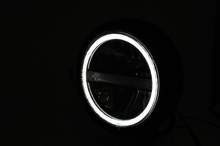 El Pecos Type 6 se caracteriza por la última tecnología de iluminación y el diseño de iluminación extraordinario. La característica especial de este faro LED es el equipo adicional con luz diurna y anillo de luz de estacionamiento. La luz del día para correr para una visibilidad aún mayor en el tráfico vial se encuentra en la franja colocada en el centro. En la mitad superior del faro, el haz sumergido se ilumina y cuando el haz principal se enciende ambas mitades se iluminan.