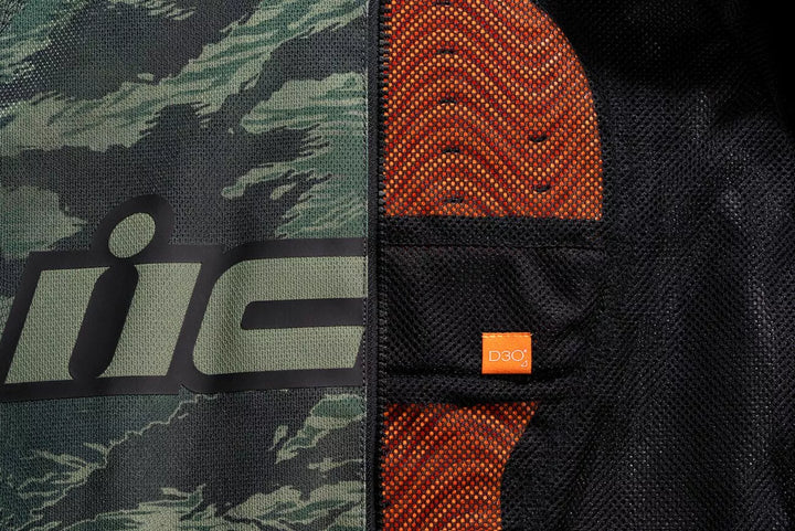 Construido en el patrón de ajuste deportivo de icono, la chaqueta está construida con un chasis de poliéster 300D, los paneles de malla de hierro ™ se colocan en áreas estratégicas, aumento significativo de flujo de aire, protectores de impacto D3O® en los hombros, codos y espalda