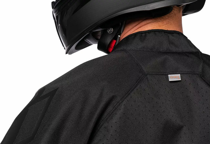 Chasis duradero de poliéster 300D con refuerzo interno, ajuste deportivo Icon®, paneles de ventilación de malla, correas de cintura ajustable, cremalleras YKK®, protector trasero EN 1621-2 Nivel 1, EN 17092-4: 2020-A Clase