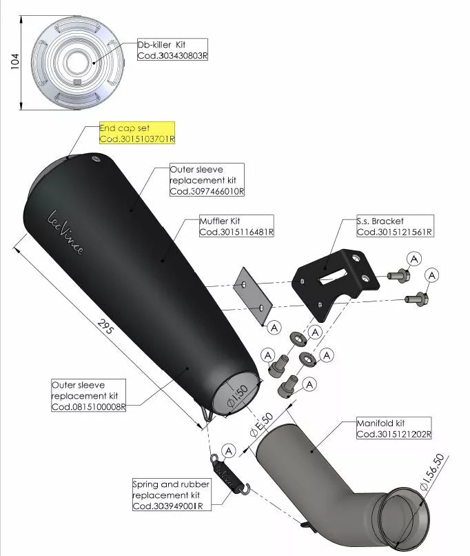 Piezas de reemplazo de escape de Leovince, tapas finales, disponibles en acero inoxidable o carbono