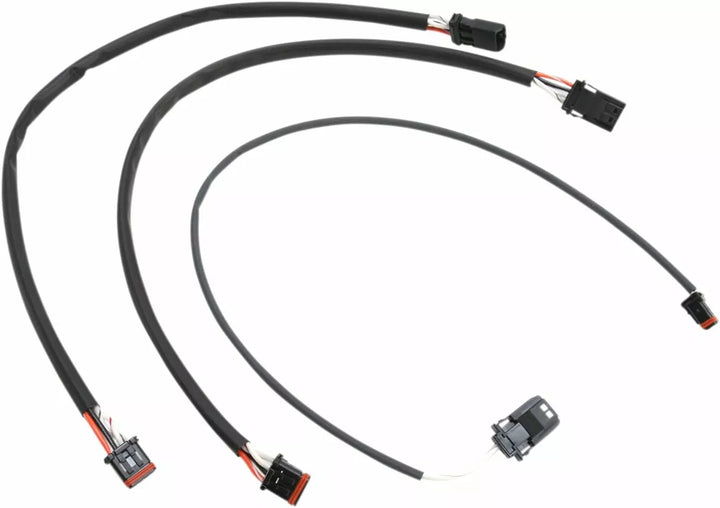 Todos los elementos necesarios para extender con éxito el cableado a un conjunto de interruptores de manillar OEM H-D, los arneses incluyen terminales Molex masculinas y femeninas en cada extremo, el kit incluye contracción de calor de alambre y alambre de combate de color, fabricados en la U.A.