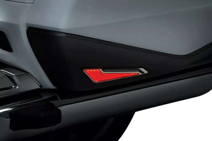 Reemplace los reflectores simplistas con la iluminación de la señal de ejecución roja auxiliar y la señal de giro ámbar, lentes de policarbonato de humo reflectante que ofrecen una actualización estética cuando la bicicleta se enciende, reemplazos directos para la funcionalidad de la señal de giro de ámbar del lado del lado, requiere el adaptador de cableado Kuryakyn para la instalación (parte #2120-1000, vendido por separado))