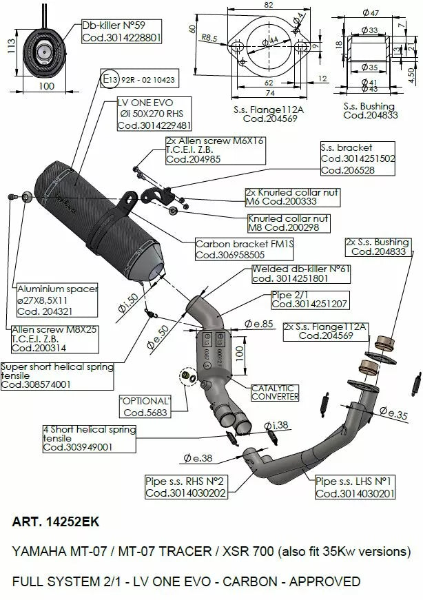 LV One Evo Carbon Fiber, The Leovince LV One Evo Carbon es la síntesis entre la tradición y la modernidad. Combina el aspecto de estilo clásico de Leovince y la innovación en la investigación de los materiales más activos y livianos. Embalaje resistente (1.650 ᄚ F), correa de fijación de carbono completo ajustable
