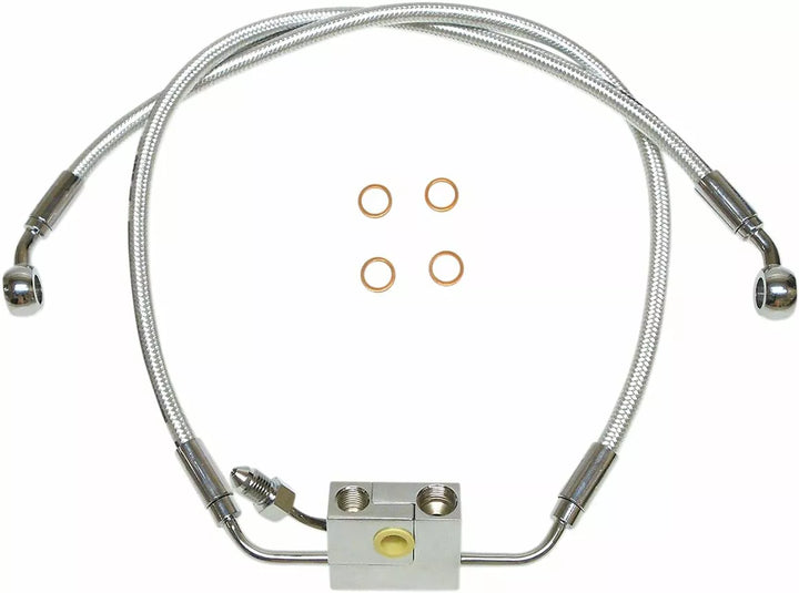 Si se reemplaza el conjunto de la línea de freno inferior en el '18+ dual Disc Softils, no se necesita un adaptador. Usando los accesorios AN-3, la línea superior conecta las direcciones al conjunto inferior Magnum, las líneas de freno están construidas con tubos internos PTFE, DuPont ル Kevlar ᆴ Fibra de aramid, fibra de firma premium Magnum Broids y una construcción de la chaqueta de PVC externa de PVC. Conjunción con líneas UPPS de longitud alternativa, An-3 Connect