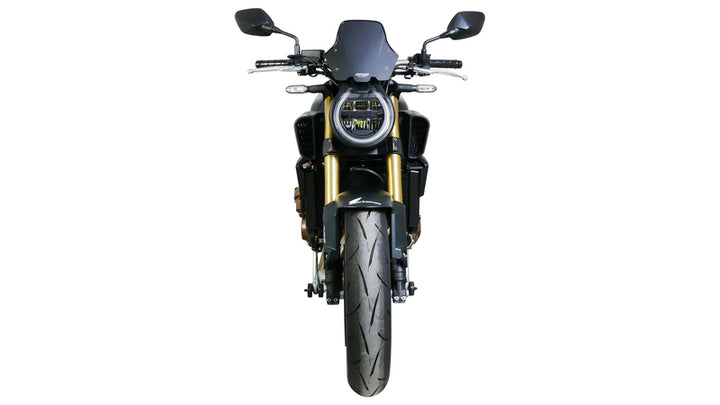 El parabrisas deportivo de "aspecto de carrera" con buena protección del viento que coincide perfectamente con el diseño y las líneas de la moto. Longitud (mm): 458 ancho (mm): 353 altura (mm): 180 Color: negro de seda mate de cigüeñal (mm): material nulo de manivela: parabrisas nulo: carreras