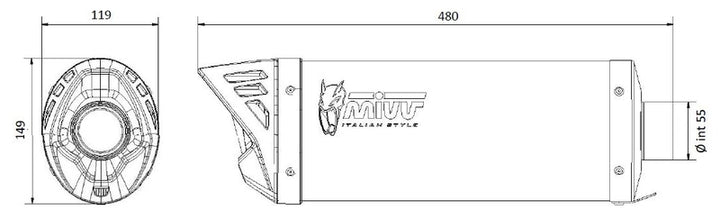Mover es el escape diseñado para el rango de scooter. Se produce en acero inoxidable con una sección ovalada y se proporciona con una tapa de salida en el material HPP. Cuenta con un acabado negro hecho con una pintura especial a base de cerámica, resistente a las altas temperaturas. El logotipo de MIVV está lasado para mejorar su exclusividad. La ligereza y el sonido inconfundible completan un producto que mejora aún más el aspecto del scooter. Muffler Acabado: Homología de acero negro: no de la calle Posición legal: Derecha