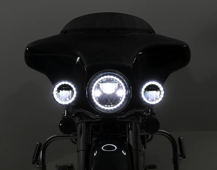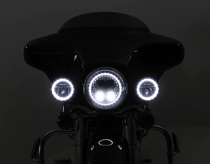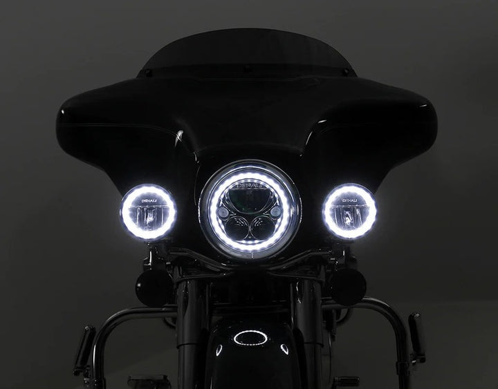 ¿Desea reemplazar sus viejas lámparas de halógeno de 4.5 "con algo que realmente es visible para usted y para otros? Denali M4 es un enchufe directo-y-opciones LED de reproducción que no solo mejoran la visibilidad, sino que también levanta todo el aspecto en su alto Acabado de cromo negro y Luz de la tierra de halo.
