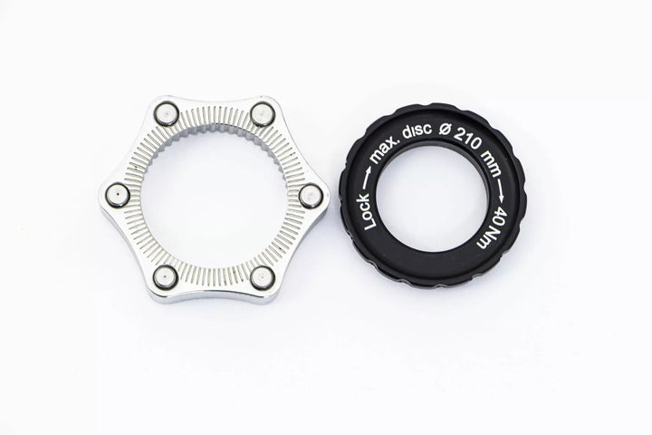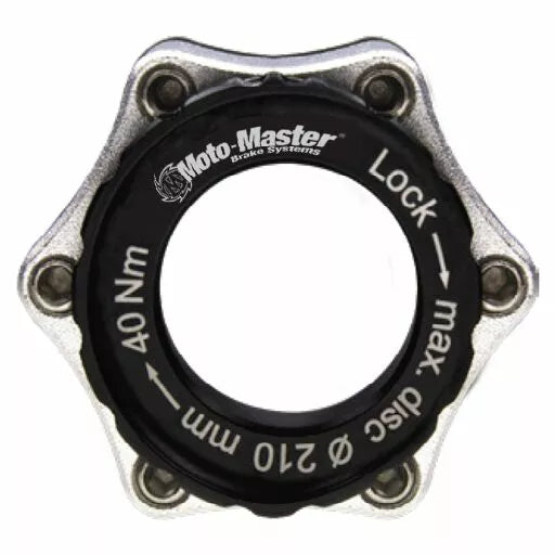Este adaptador permite el ensamblaje simple y el desmontaje de los discos de freno de 6 hoyos.