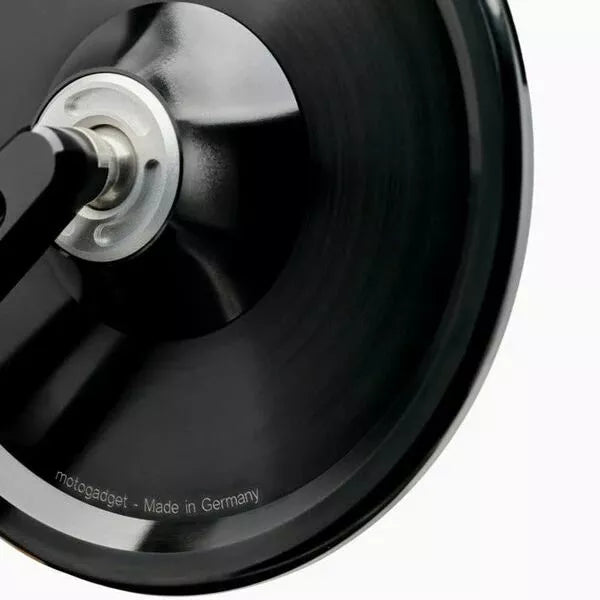 La solución compacta con una longitud del brazo de 110 mm, para Scrambler o Super Moto. , Instalación rápida con una amplia gama de opciones de montaje sin modificaciones en las barras de mango. , El mecanismo de flip integrado para doblar los espejos es ideal para pasajes estrechos, al transportar vehículos o cuando hay problemas de espacio en el garaje. , El espejo se puede montar sobre o debajo del manillar. Nuestra serie de espejos sin glas Mo.View es único en el mundo. La característica especial de nuestros espejos es la superficie de espejo patentada, que se trabaja directamente desde el metal del cuerpo. El aluminio en sí es la superficie del espejo. El cuerpo del espejo es muy delgado y ligero, da como resultado un diseño sin peso sin un borde o marco. La superficie del espejo convexo se produce mediante el corte de moscas utilizando herramientas de diamantes en máquinas ultra precisión en Berlín. Luego se hace resistente a la oxidación, la corrosión y la abrasión mediante un elaborado recubrimiento de plasma en un vacío. El cuerpo del espejo, el brazo espejo y la abrazadera se fresan de aluminio sólido en máquinas CNC y se anodizan a alta calidad. Todos los tornillos están hechos de acero inoxidable. La bola precisa se une al espejo que se ajustará cómodo y muy estable. Las gafas rotas o caídas simplemente no son posibles. El espejo adicional se puede montar sobre o debajo del manillar. El brazo se puede hacer girar y bloquear en su lugar en pasos de 45 °. , El espejo es adecuado para el lado derecho e izquierdo. Está montado en las barras de mango, dependiendo de la versión para un diámetro manejable de 7/8 "o 1". A free handlebar area of 10 mm width is required for mounting, no modifications to the handle bars or fittings are necessary., Diameter of the mirror body: 99 mm., Thickness of the mirror Body without ball head: 5.6 mm., Length of the Mirror Arm 260g., Scope of Delivery: 1x Rear-View Mirror Mo.view Classic 110 Pivot, With Ece Marking, With 110mm Arm, 1x Manual de pinza e instrucciones de pivote.