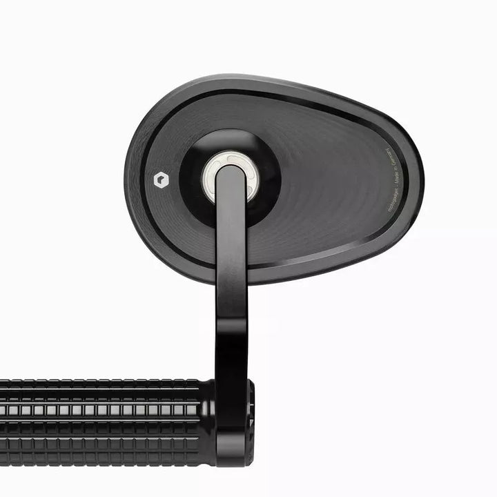 El espejo del extremo del manillar con marcado ECE se puede montar sobre o debajo del manillar. El ángulo del brazo del espejo es rígido. Nuestra serie de espejos sin vidrio Mo.View es único en el mundo. La característica especial de nuestros espejos es la superficie de espejo patentada, que se trabaja directamente desde el metal del cuerpo. El aluminio en sí es la superficie del espejo. El cuerpo del espejo en sí es muy delgado y ligero, da como resultado un diseño sin peso sin borde o marco. La superficie del espejo convexo se produce mediante corte de mosca usando herramientas de diamantes en ultra y en Berlín. Luego se hace resistente a la oxidación, la corrosión y la abrasión mediante un elaborado recubrimiento de plasma en un vacío. El cuerpo del espejo, el brazo espejo y la abrazadera para el extremo manejable se fresan de aluminio sólido en máquinas CNC y se anodizan a una alta calidad. Todos los tornillos están hechos de acero inoxidable. La bola precisa se une al espejo que se ajustará cómodo y muy estable. La rotura de vidrio o la caída de vidrio simplemente no es posible. El espejo del extremo del manillar se puede montar sobre o debajo del manillar. , El brazo pequeño se puede girar. El espejo es adecuado para el lado derecho e izquierdo. Se puede montar directamente en el extremo manejable (22 mm y 1 pulgada) o, si los agarres y los accesorios no se pueden mover, utilizando el adaptador de barra Mo.View., Ancho del cuerpo del espejo: 114 mm., Mirror Cuerpo Altura del cuerpo: 80 mm. Manillar de 1 pulgada., Espesor del cuerpo del espejo sin cabeza de pelota: 4.5 mm., Ancho de la abrazadera: 12 mm., Peso: 150 g, alcance de suministro: 1x Vista trasera Mirror Mo.View Club 130 (con marca ece) con brazo, 1 x Clamp & Arm.